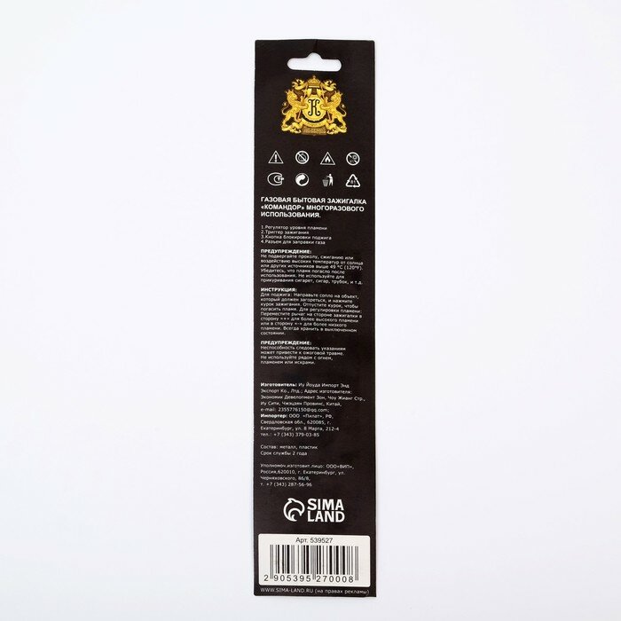 Купить Газовая бытовая зажигалка "Командор" многоразового использования