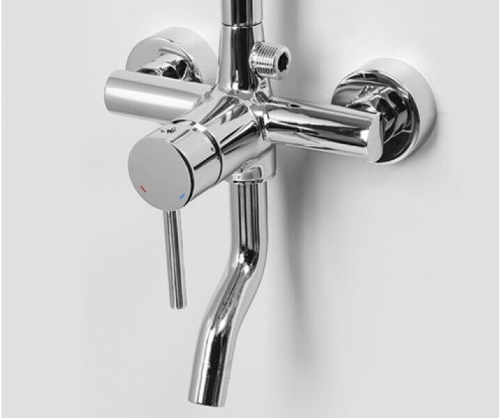 | Дополнительная информация | излив смесителя выполняет функцию поворотного переключателя на верхний душ/ручную лейку; высота стойки для душа: 1250 мм; диаметр верхнего душа: 250 мм |