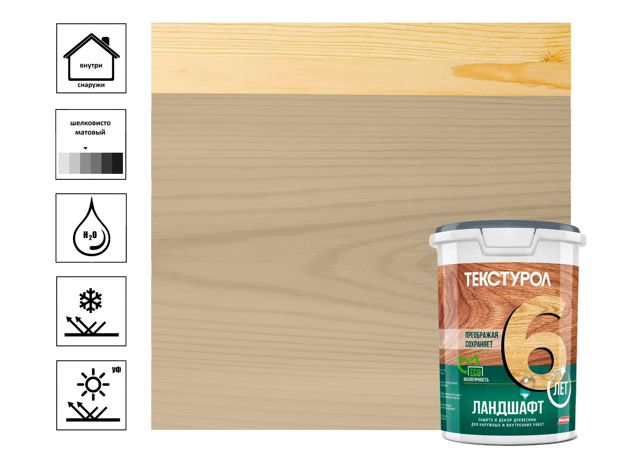 Защитное покрытие для древесины Ландшафт Текстурол 9 л ясень шелковисто-глянцевая