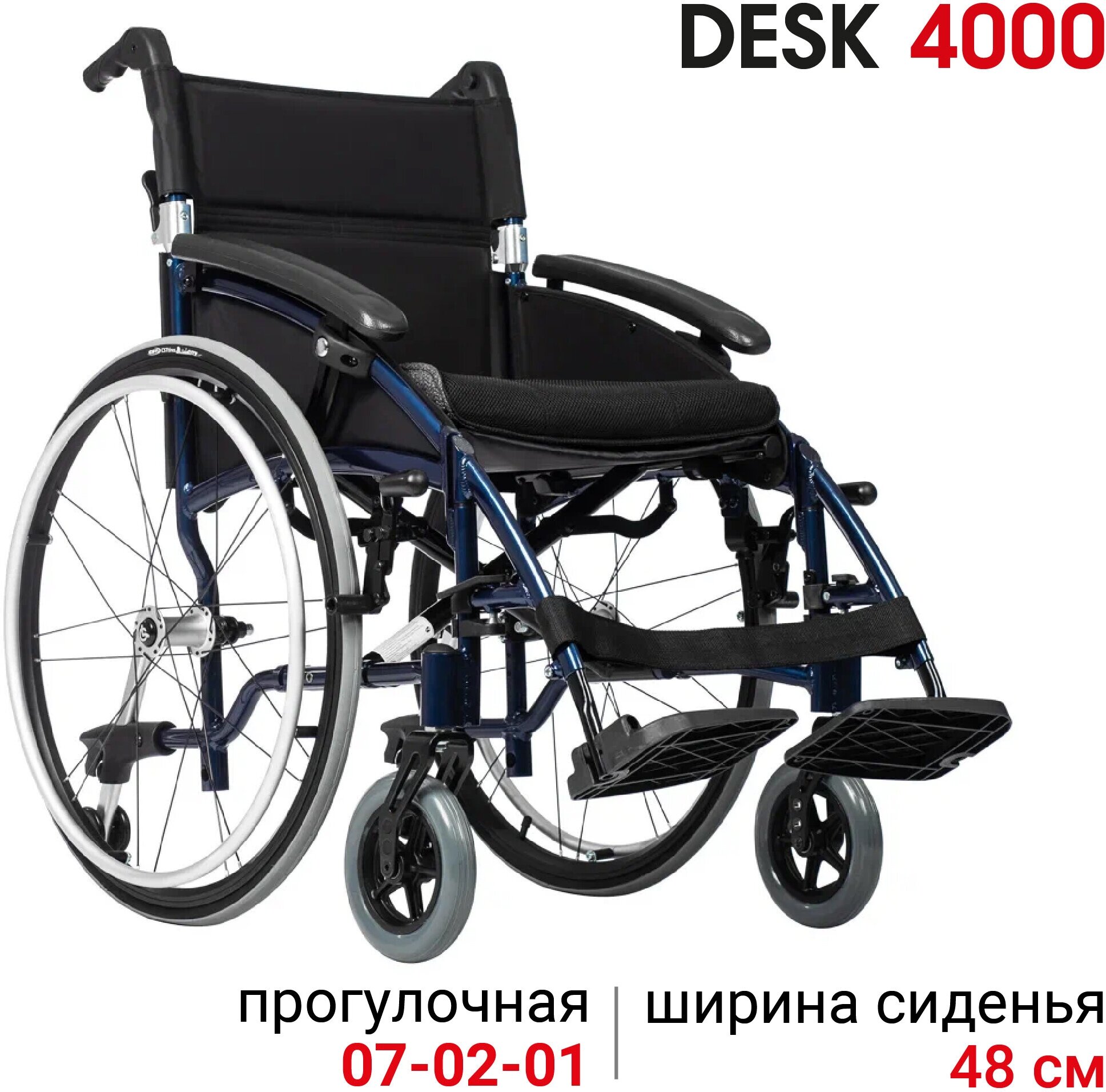 Кресло-коляска прогулочная Ortonica Base 185/ Desk 4000 48PU алюминиевая с противопролежневой подушкой ширина сиденья 48 см пневматические колеса, код 07-02-01