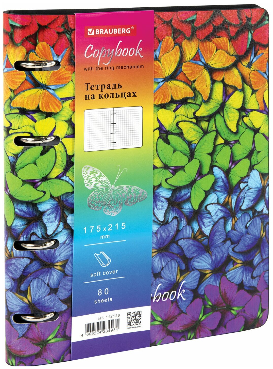 Тетрадь на кольцах А5 160х215 мм, 80 л., пластик, клетка, BR