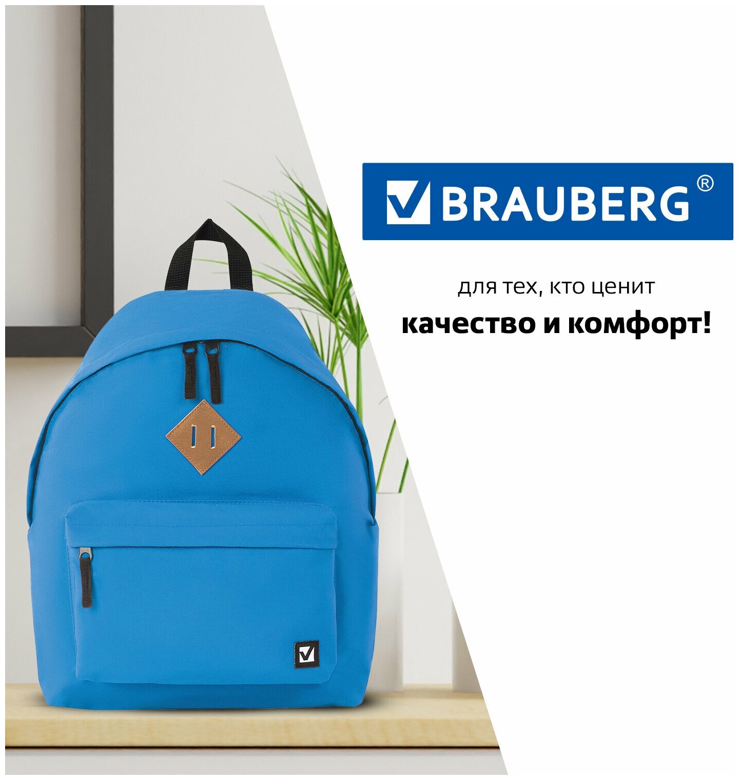 Купить Рюкзак / ранец / портфель мужской, женский, школьный, подростковый, городской Brauberg, универсальный, сити-формат, один тон, голубой, 20 литров, 41х32х14 см