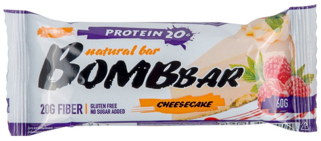 Купить Батончик неглазированный Малиновый чизкейк Bombbar60г по 20шт