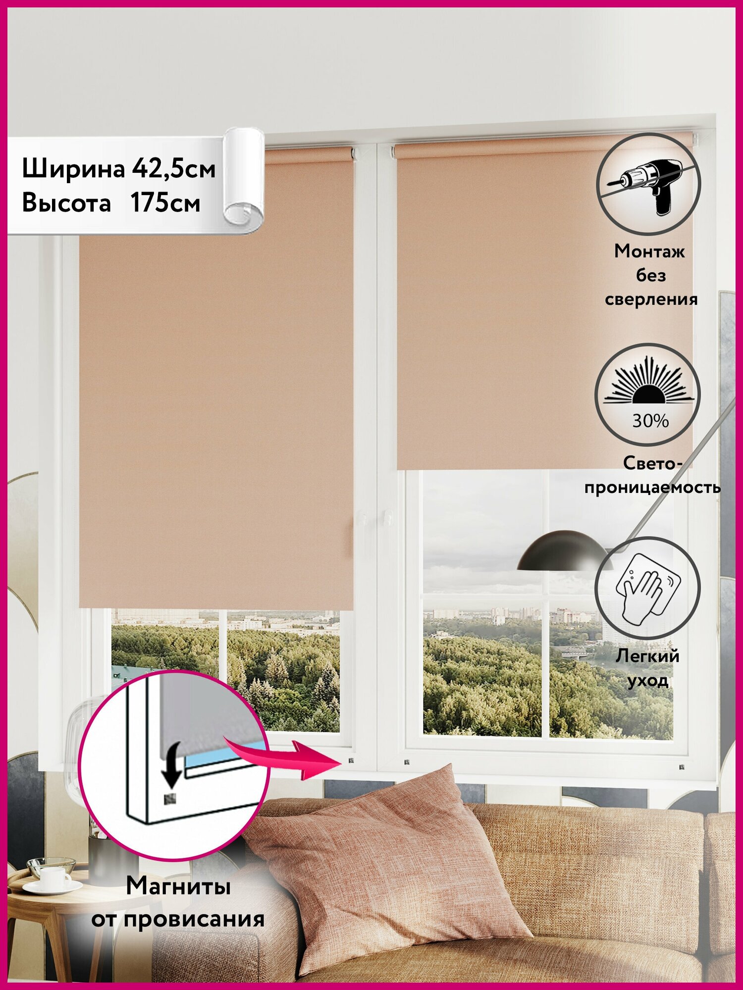 Рулонная штора DOMLEGRAND лестер 42,5 на 175 пудра / Рулонные шторы на окна не блэкаут / Жалюзи на окна / Шторы не блэкаут