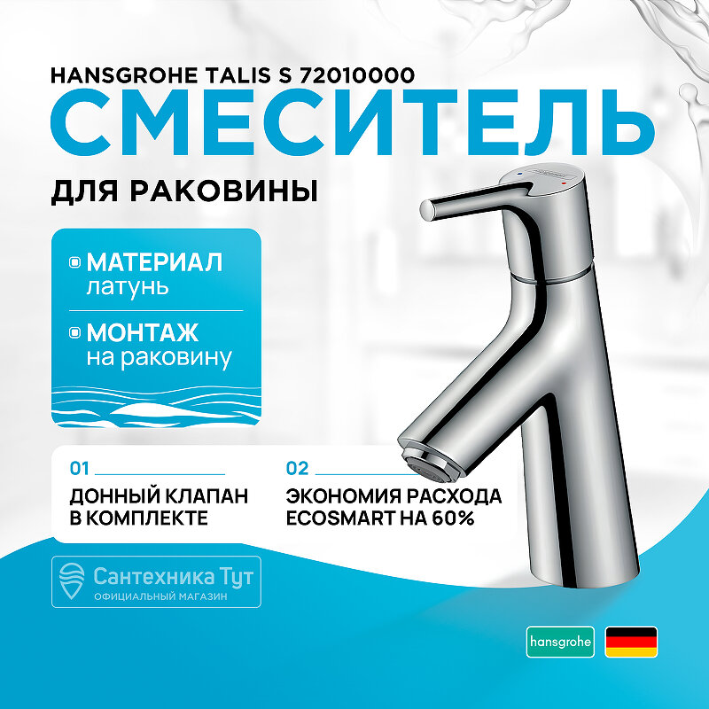 Смеситель для раковины Hansgrohe Talis S с донным клапаном, хром (72010000)