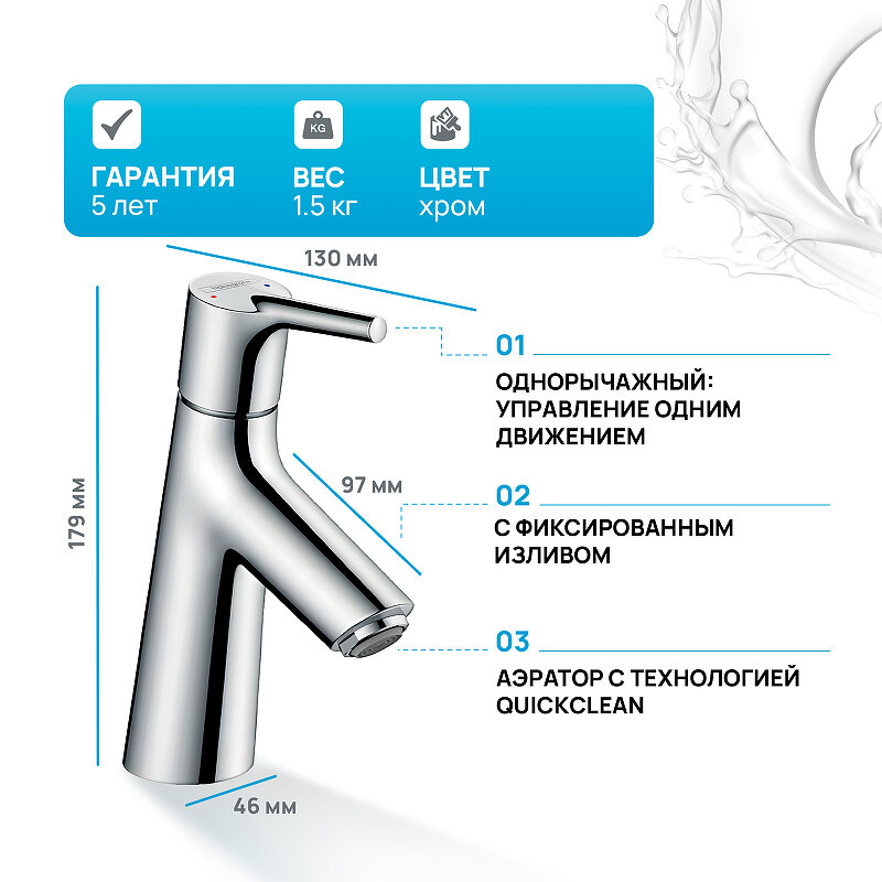 Смеситель hansgrohe Talis S для раковины с низким изливом и сливным гарнитуром, хром 72010000
