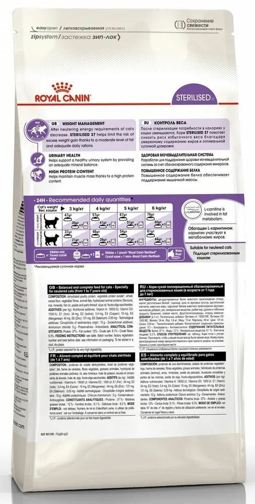 ROYAL CANIN STERILISED 37 для взрослых кастрированных котов и стерилизованных кошек (4 кг)