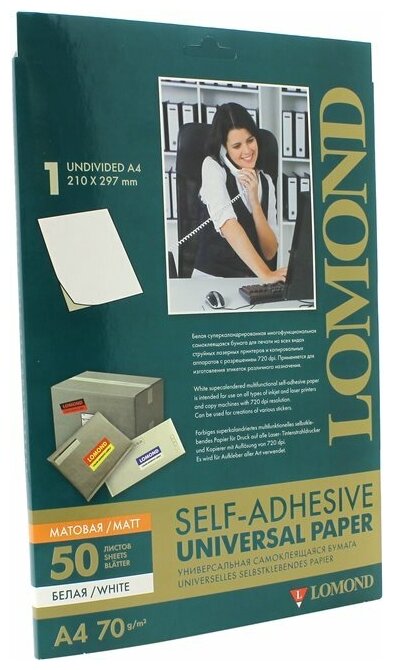 Бумага Lomond самоклеящаяся (2100005), 1 деление, A4, 70 г/м2, 50 л.