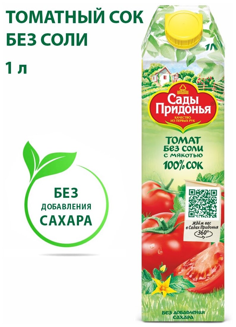 Сок Сады Придонья Томат без соли, без сахара, 1 л, 12 шт.