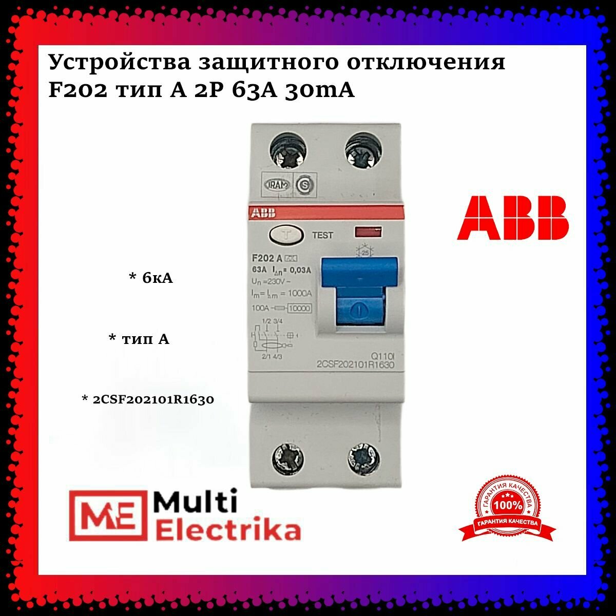 ABB F202A УЗО 2Р 63А 30mA (А)
