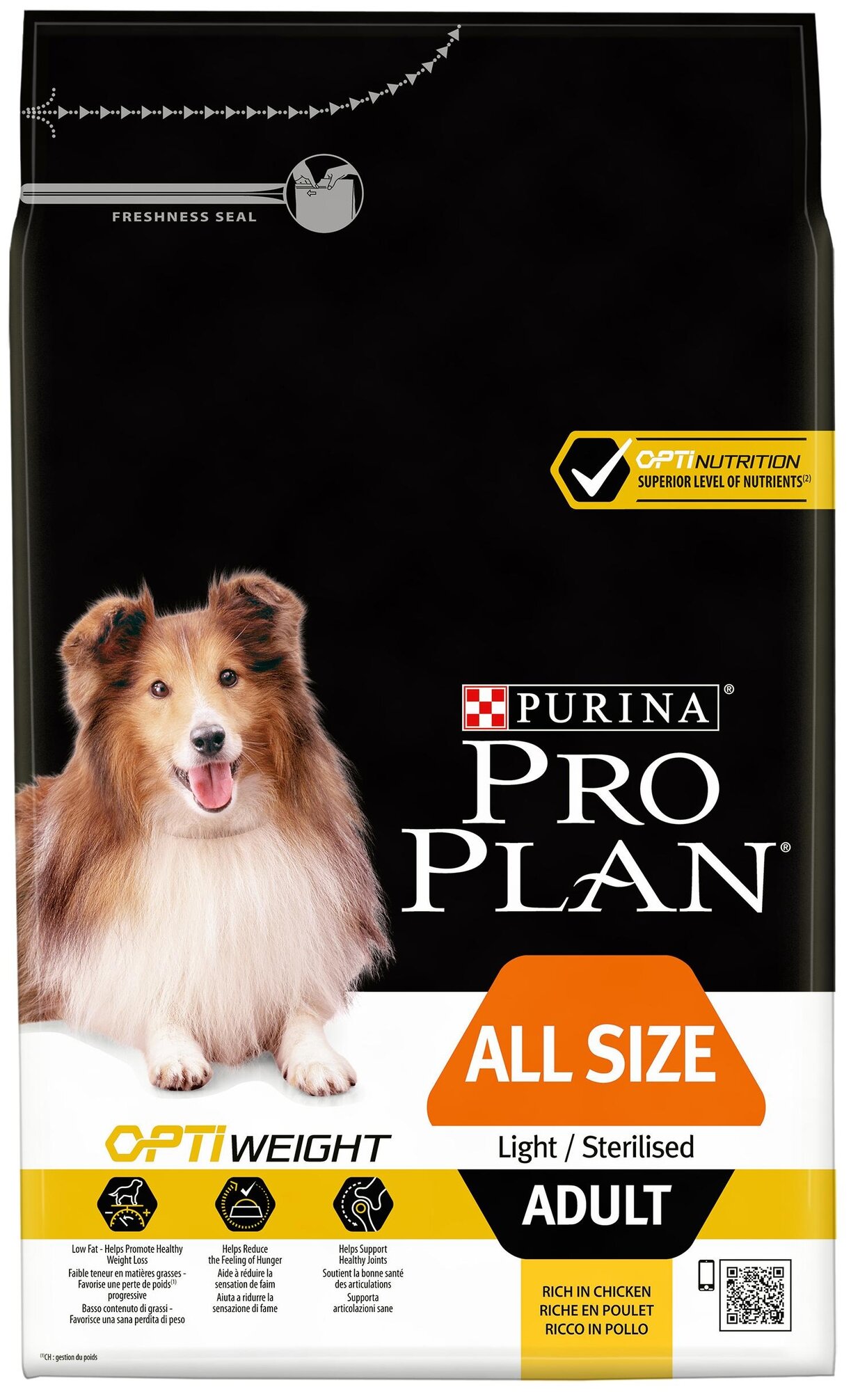 PRO PLAN ADULT DOG OPTIWEIGHT ALL SIZE LIGHT/STERILISED диетический для взрослых собак всех пород, кастрированных и стерилизованных собак с курицей и рисом (3 кг)