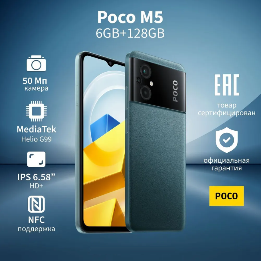 Купить Смартфон Xiaomi POCO M5 6/128 ГБ RU, Dual nano SIM, зелeный