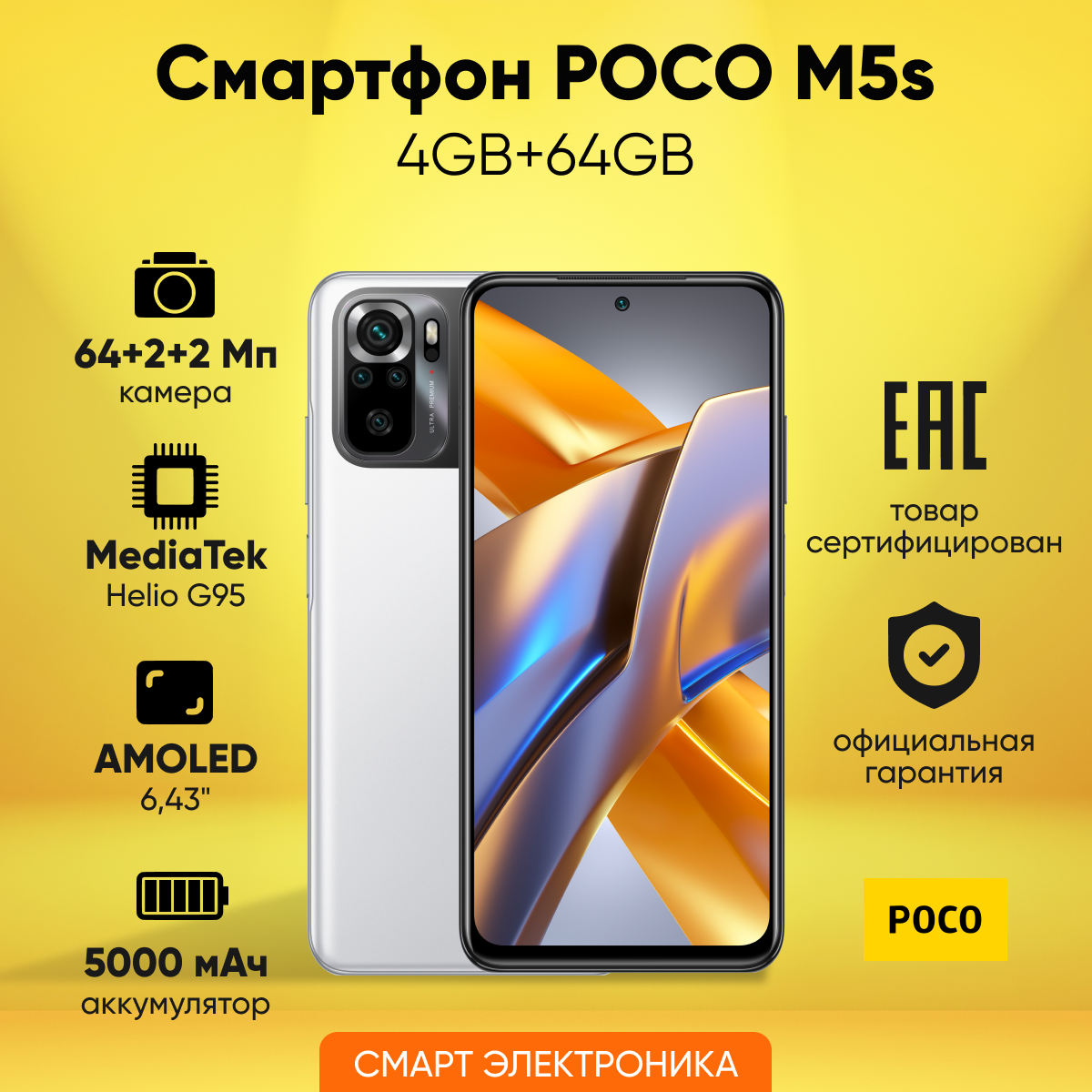 Купить Смартфон Xiaomi POCO M5s 4/64 ГБ RU, Dual nano SIM, белый