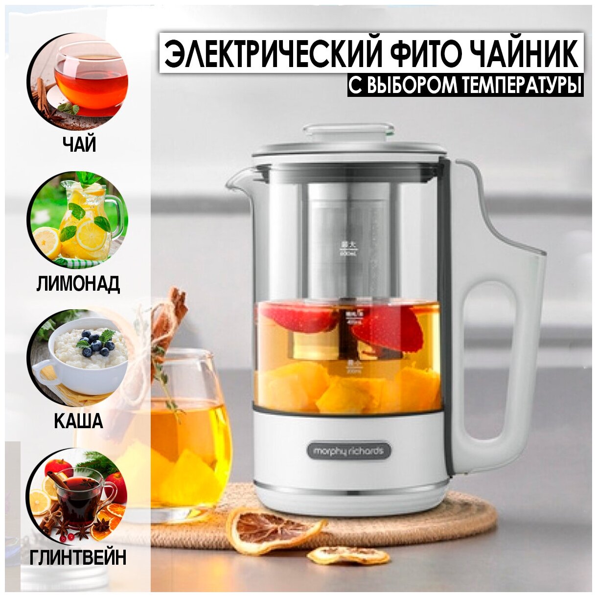 Электрический фито чайник Morphy Richards с выбором температуры Tea Maker, белый