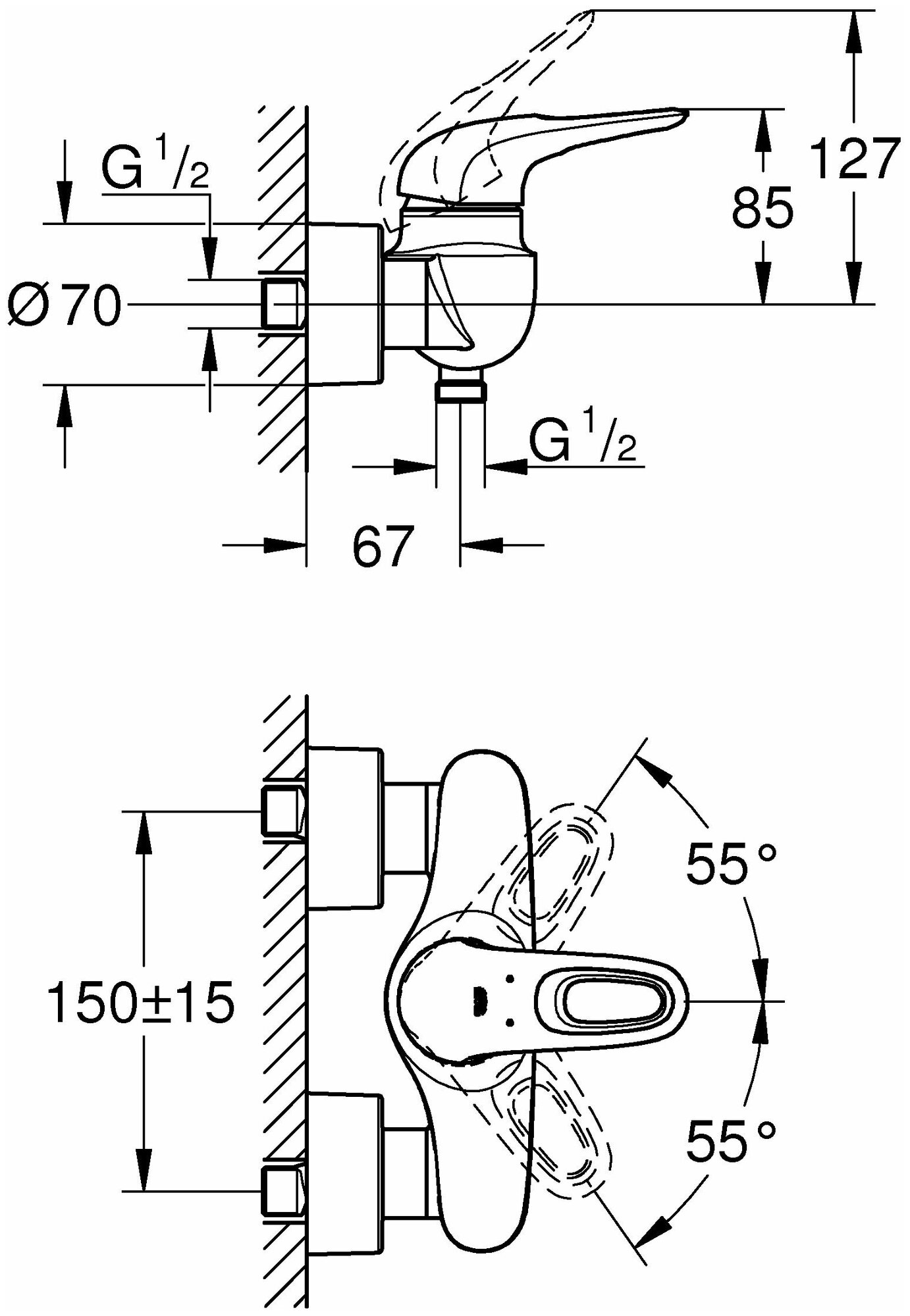 Смеситель для душа Grohe 33590003 Eurostyle Смеситель для душа, внешний монтаж, хром