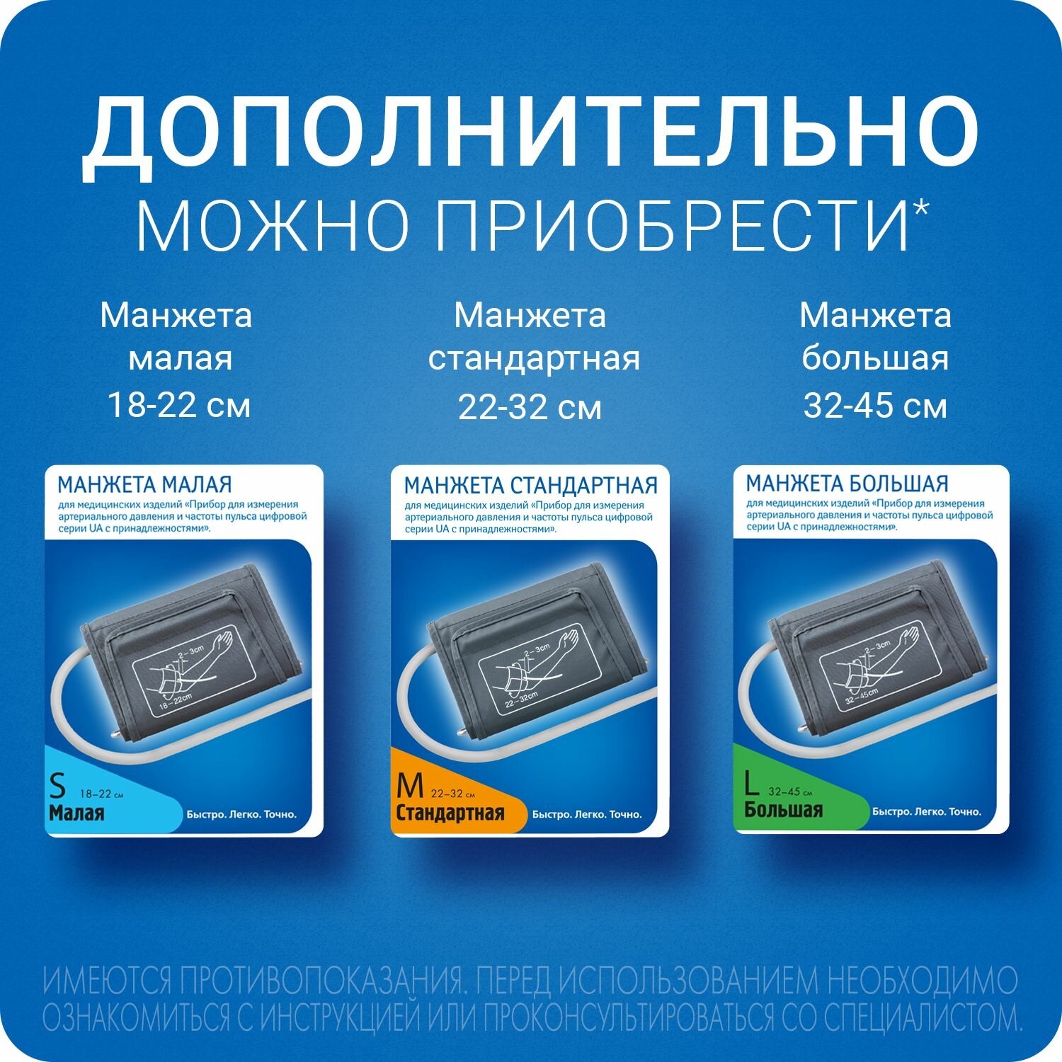 | Комплектация | основной блок в корпусе, манжета стандартная, трубка соединительная, элемент питания – 4 шт, коннектор, адаптер сетевой, чехол для хранения, руководство по эксплуатации, гарантийная карта |