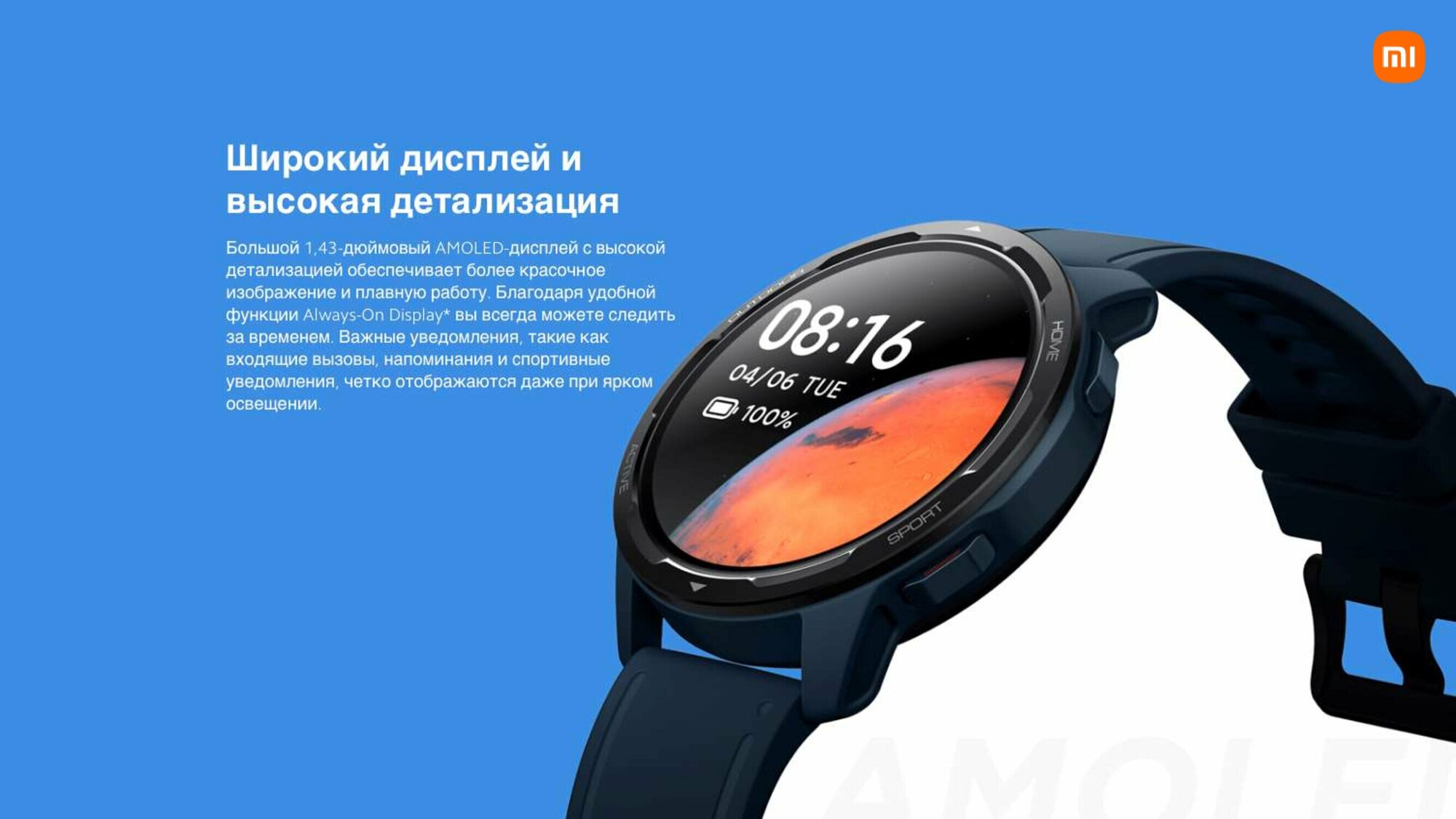 Умные наручные смарт часы электронные мужские Сяоми (S1) Watch Active GL (Blue Ocean) (BHR5467GL). Датчики: GPS-трекер, Акселерометр, Гироскоп