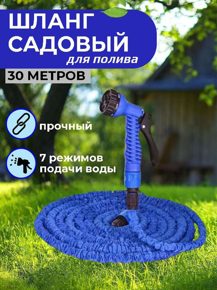 Растягивающийся садовый шланг для полива с насадкой-распылителем Magic Hose (Синий) 30 метров интересное: