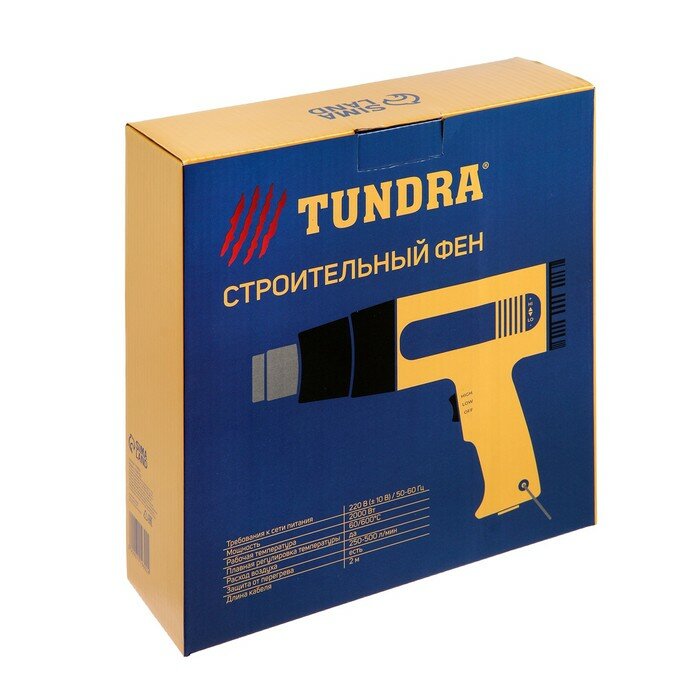 Строительный фен тундра, 2000 Вт, 250-500 л/мин, плавная регулировка температуры 60-600°С(В наборе1шт.)