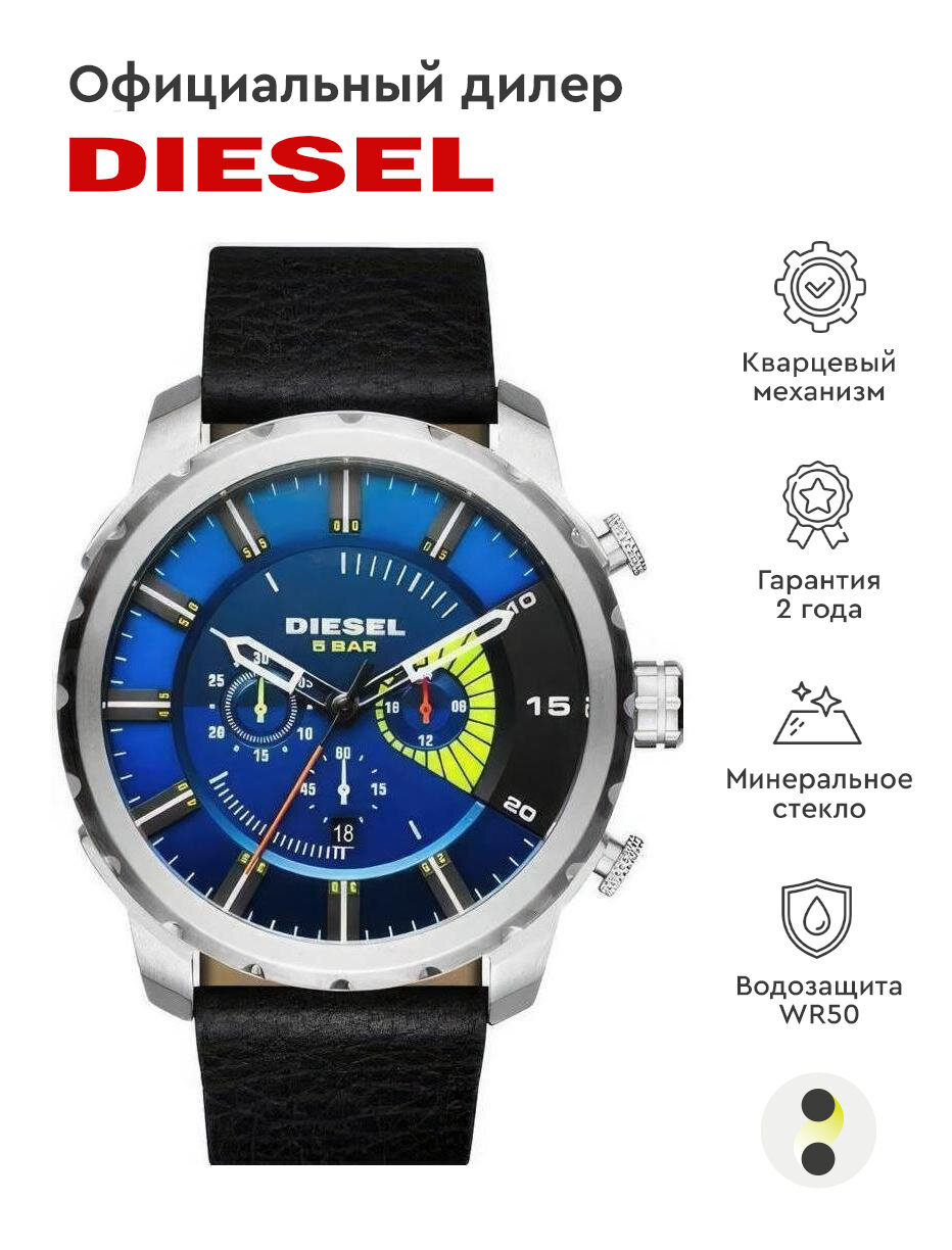Часы американские наручные мужские кварцевые на ремне Diesel DZ4411 интересное: