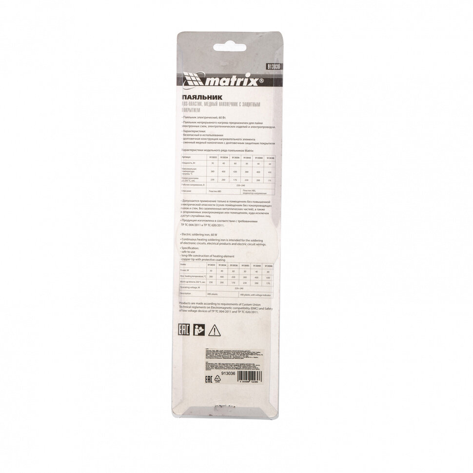 Купить Паяльник, пластик ABS с пониженной теплопроводностью, медный наконечник с долговечным покрытием, 220 В, 60 W Matrix