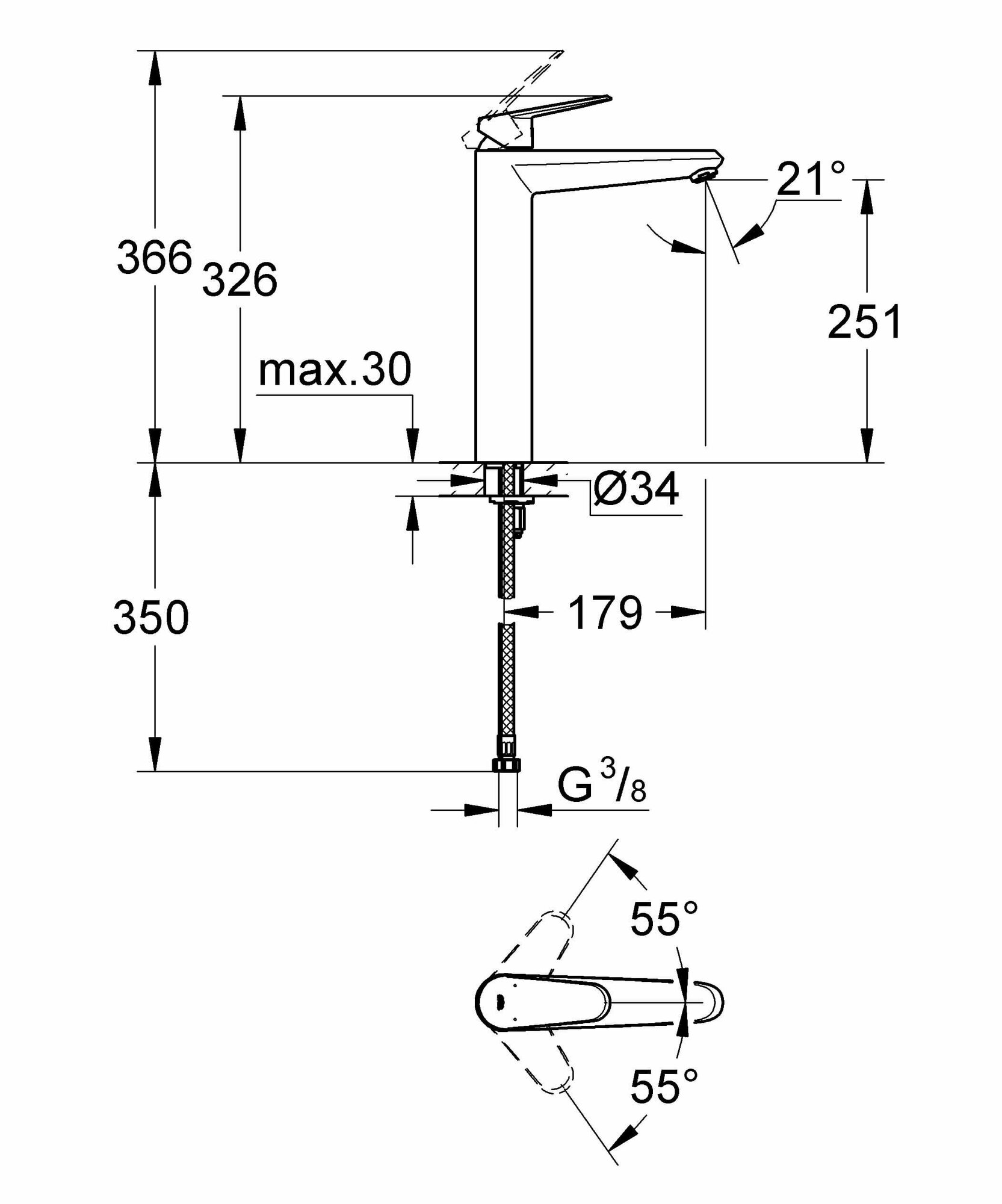| Угол поворота рукоятки гориз. | 55 градусов |