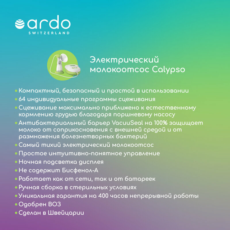 Молокоотсос электрический ARDO Calypso, 64 режима сцеживания, индивидуальная настройка