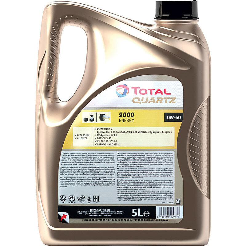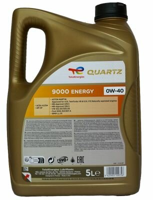 TOTALENERGIES 213989 Масло моторное синтетическое 5 л. TOTAL QUARTZ 9000 ENERGY 0W-40, ACEA A3, B4, API SN, CF, VW 505 00, VW 502 00, Porsche A40, MB 229.5, WSS-M2C937-A 1шт