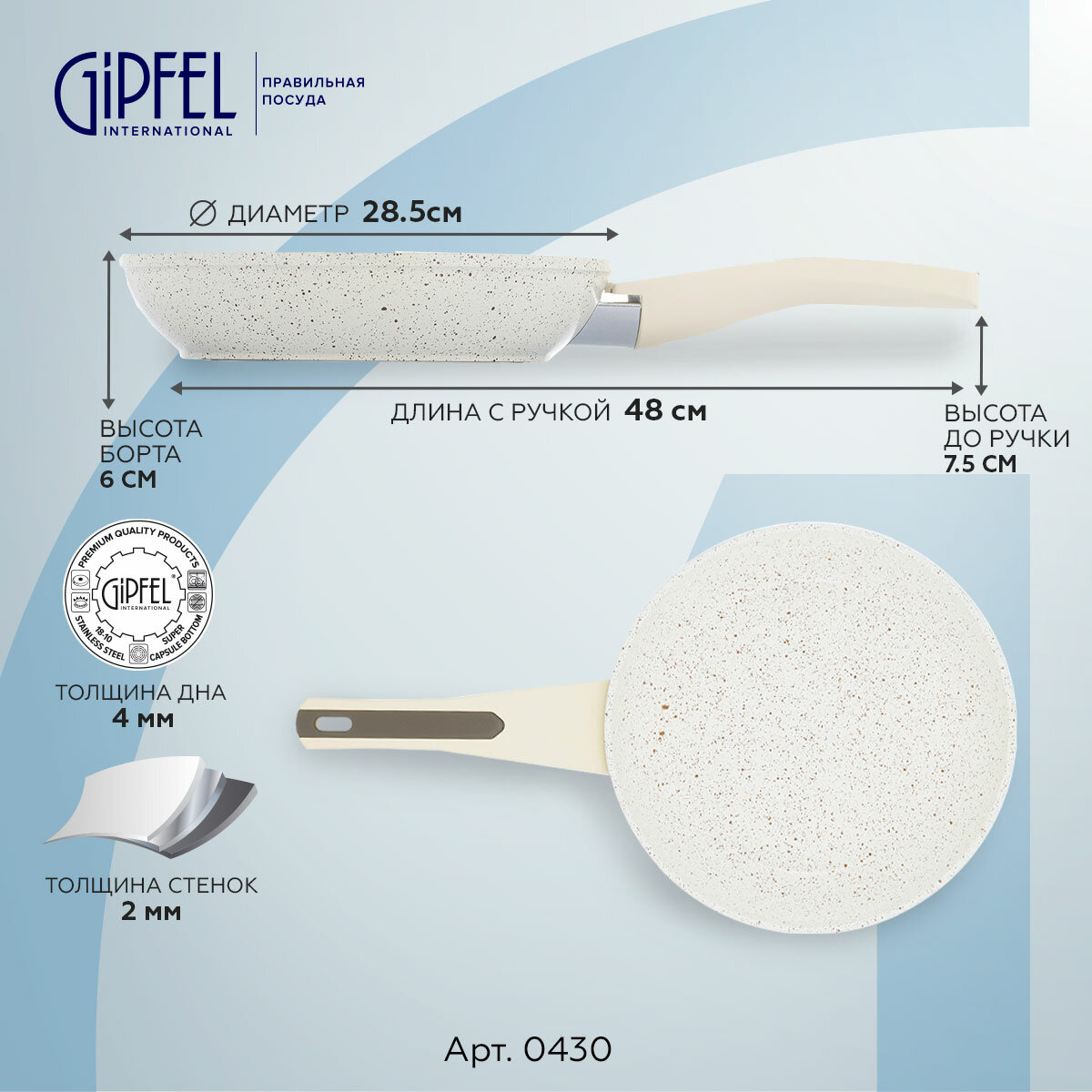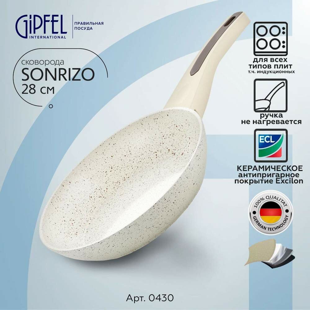 Сковорода SONRIZO 28см 0430 GIPFEL бежевая интересное: