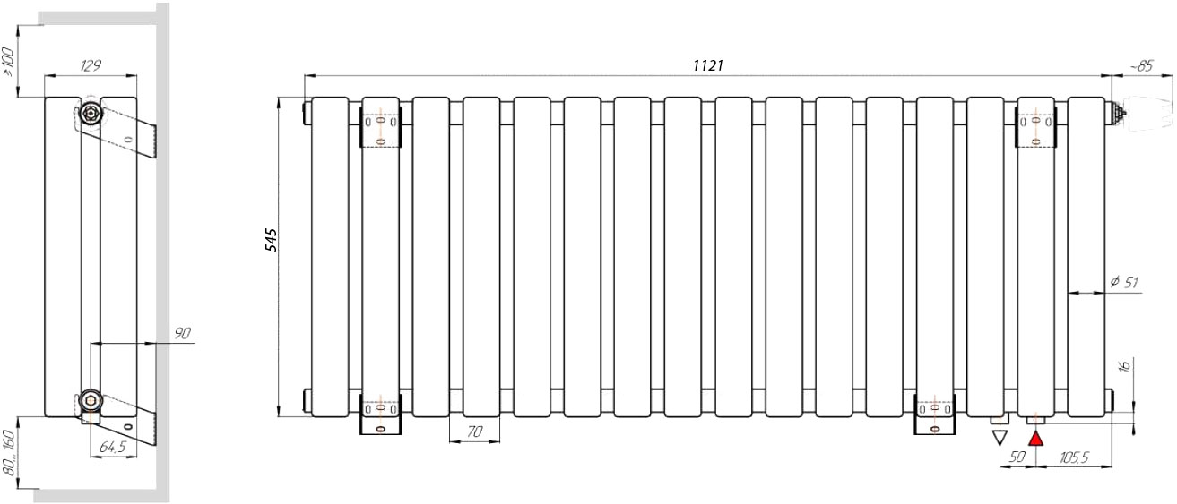 КЗТО Гармония 2-500, 16 секций, боковое, цвет белый