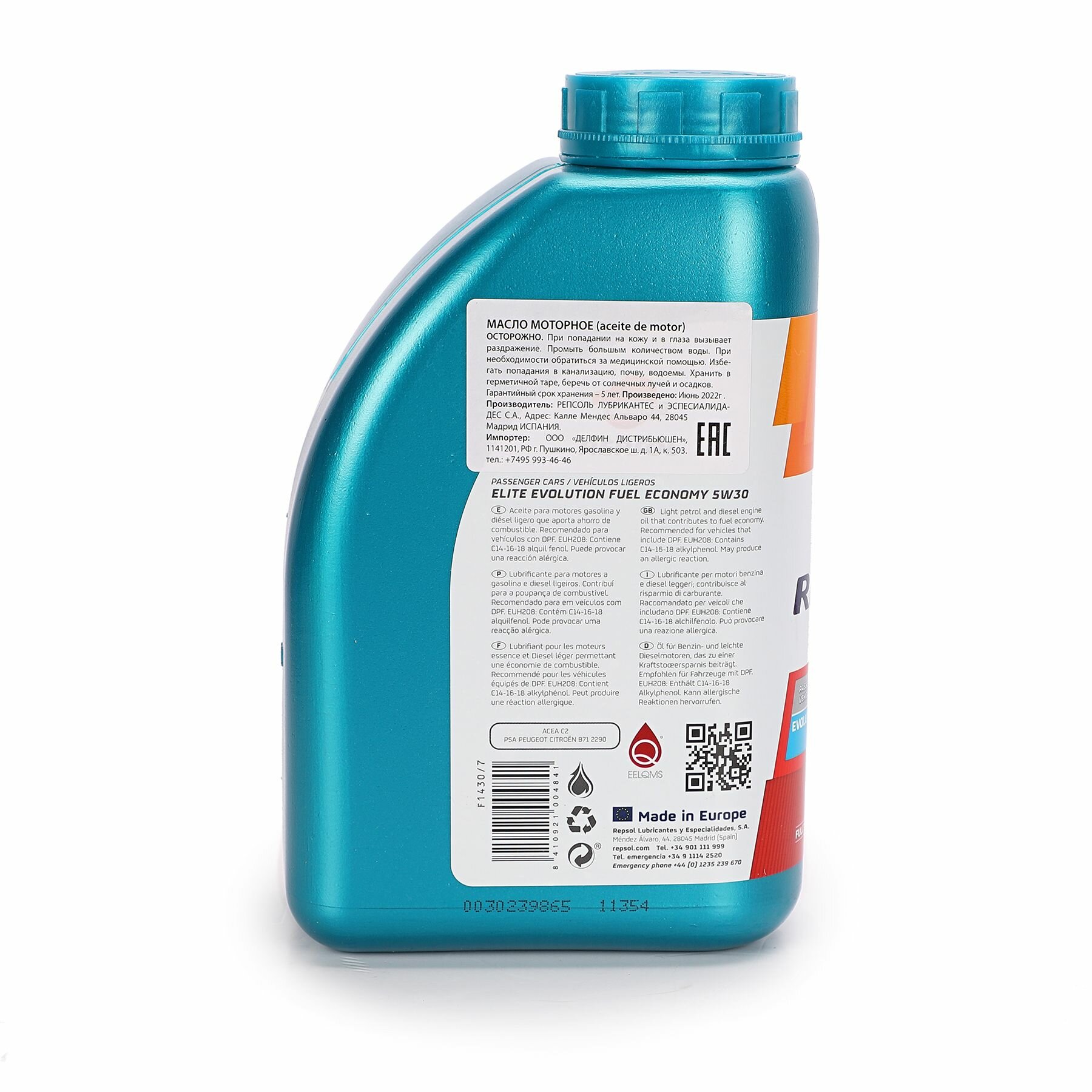 Масло RP ELITE EVOLUTION FUEL ECONOMY 5W30 1л ACEA C2, PSA PEUGEOT CITROEN B71 2290 REPSOL 6049/R | цена за 1 шт | минимальный заказ 1