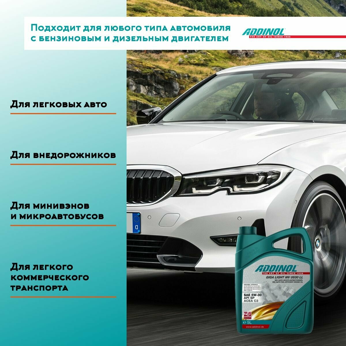 Синтетическое моторное масло ADDINOL Giga Light MV 0530 LL SAE 5W-30, 5 л