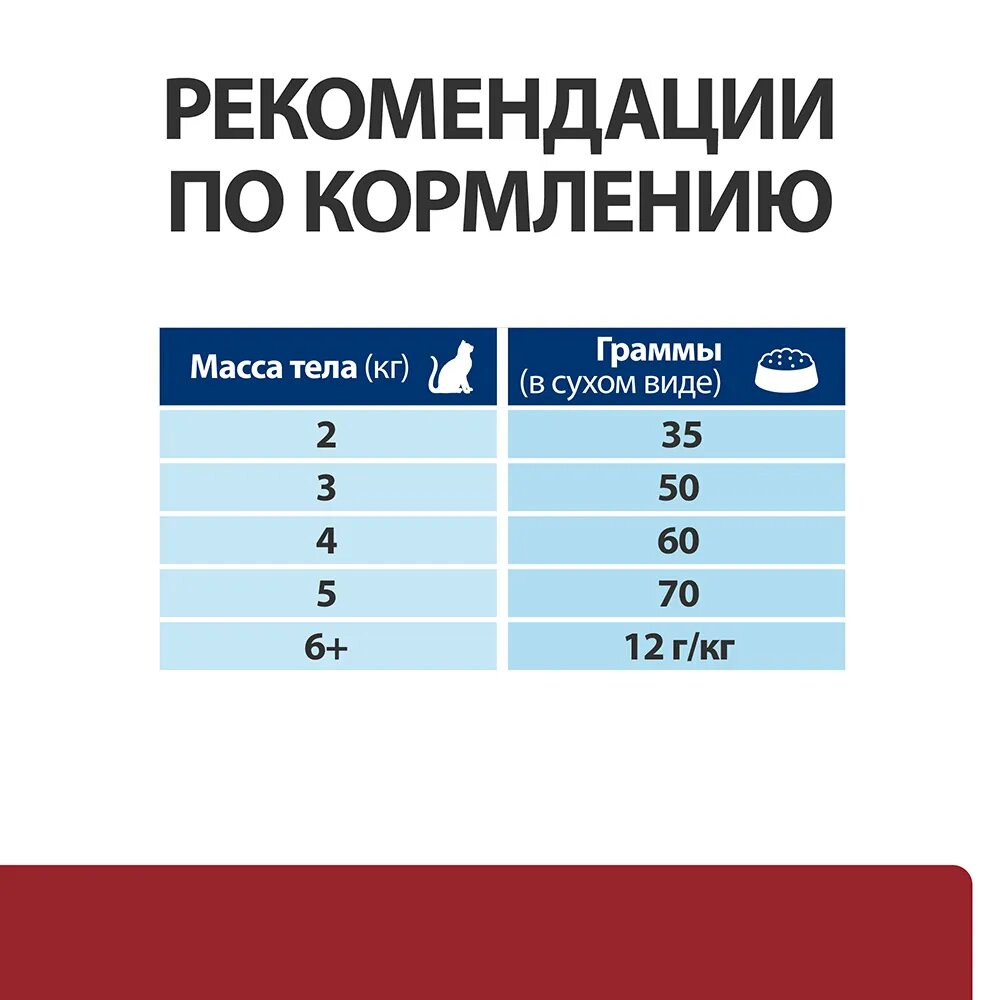 | Дозировка | Пробуете этот корм впервые? Постепенно в течение 7 дней переводите животное на новый корм, увеличивая его содержание по отношению к прежнему. Обеспечьте питомцу свободный доступ к свежей воде. Монодиета. Не требует дополнений.Норма кормления для кошки весом 4 кг составляет 3-4 пауча в день и может быть разделена на 2 и более кормлений. Скорректируйте объем порции в соответствии с размером животного для поддержания оптимального веса. Перед применением проконсультируйтесь с ветеринарным специалистом. |