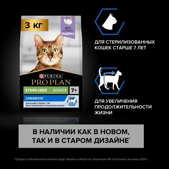 Pro Plan Sterilised 7+ с индейкой для стерилизованных кошек и котов старше 7 лет, 3 кг