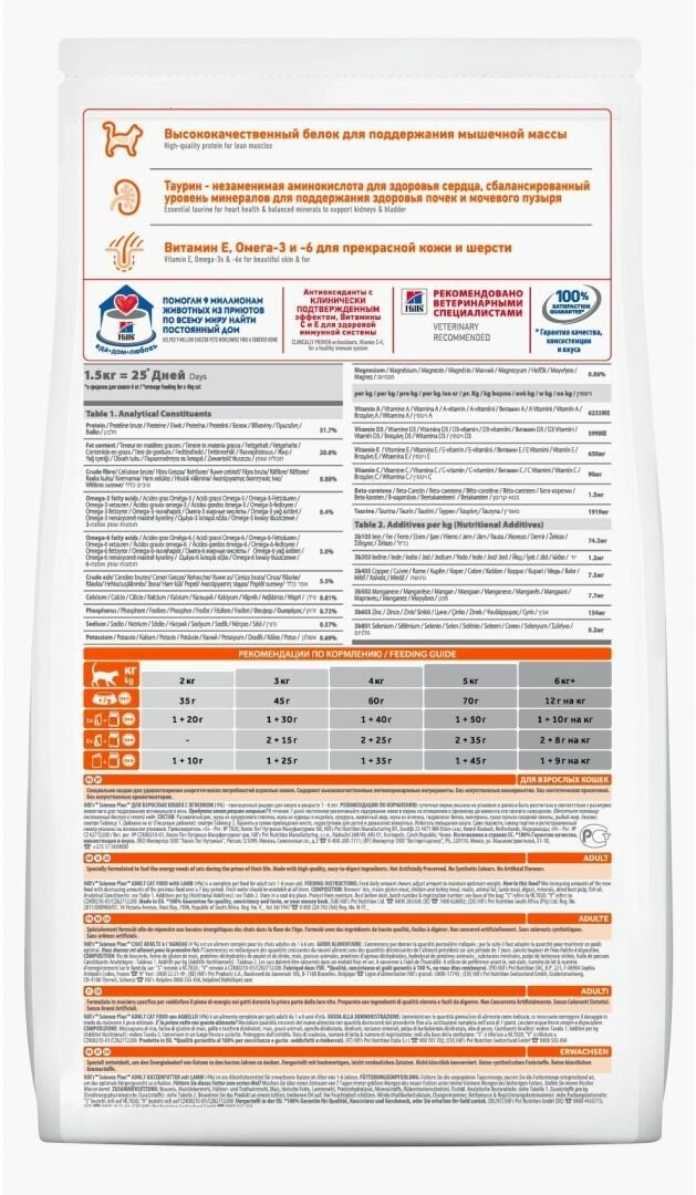 | Дополнительная информация | не рекомендуется для котят и беременных или кормящих кошек; во время беременности или кормления нужно сменить корм на Hill's Science Plan для котят влажный или сухой корм; без искусственных ароматизаторов, красителей и консервантов |