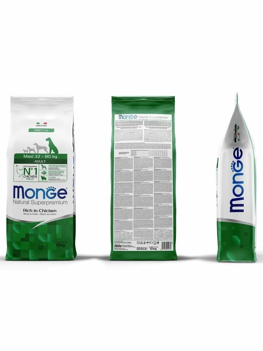 Сухой корм для собак Monge Dog Daily Line Maxi Adult chicken, курица, 3 шт х 12 кг (для крупных пород)