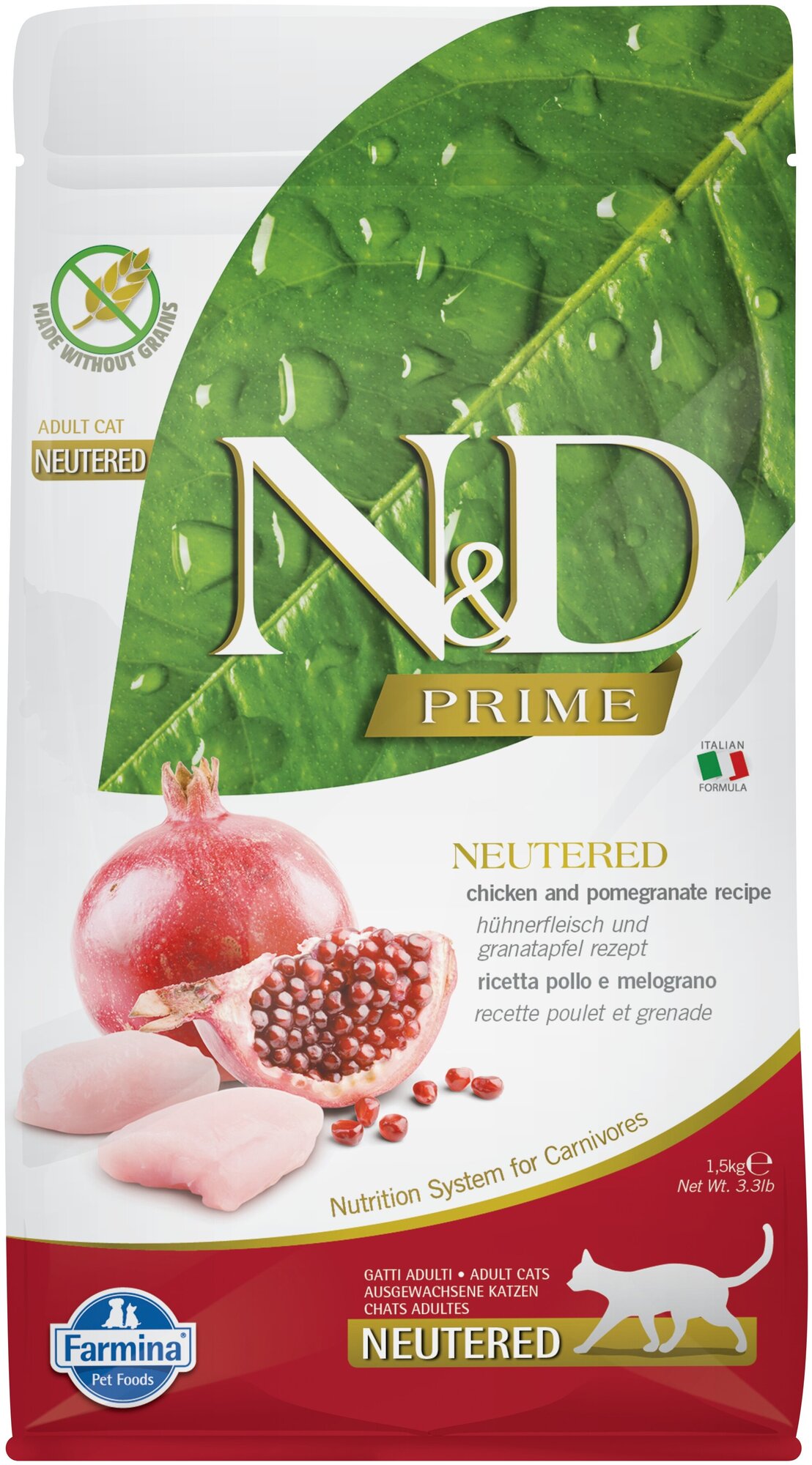 Корм для кошек FARMINA N&D Prime Line для кастрированных, курица с гранатом сух. 1,5кг