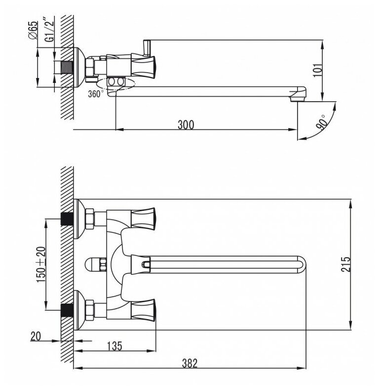 Смеситель для ванны двухвентильный Kaiser Topaz 17255, цвет хром