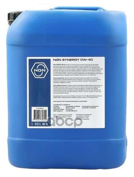 NGN V172085915 0W-40 SYNERGY SN/CF 20л (синт. мотор. масло) 1шт