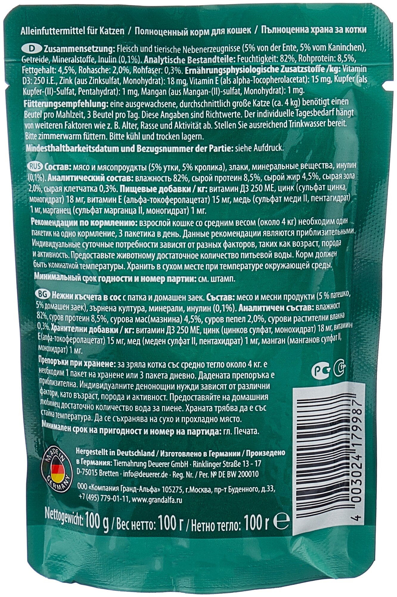 Купить Эдель Кэт пауч для кошек Нежные кусочки Утка/кролик в соусе 100гр х 20 штук в упаковке