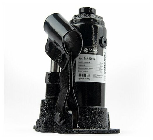 Домкрат бутылочный гидравлический БелАК БАК.00039 (2 т) черный