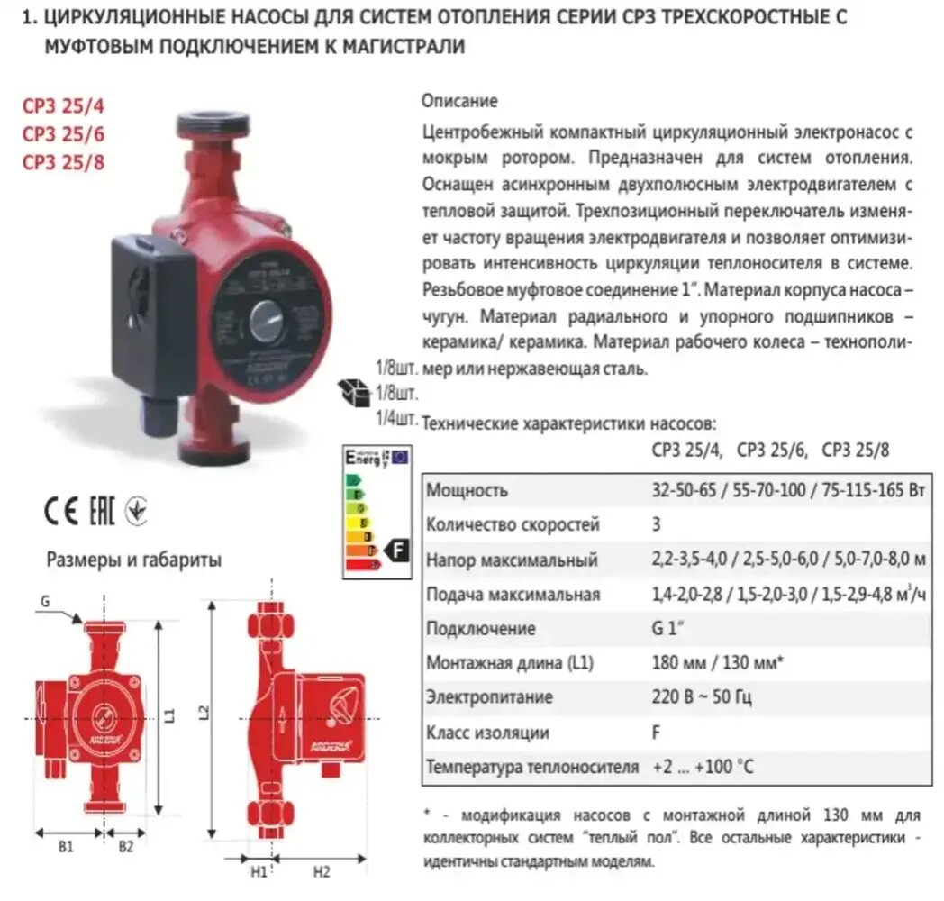 Циркуляционный насос СP3 25/8 трехскоростной с муфтовым подключением к магистрали интересное: