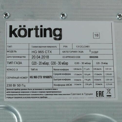 Встраиваемая газовая панель KORTING HG 965 CTX