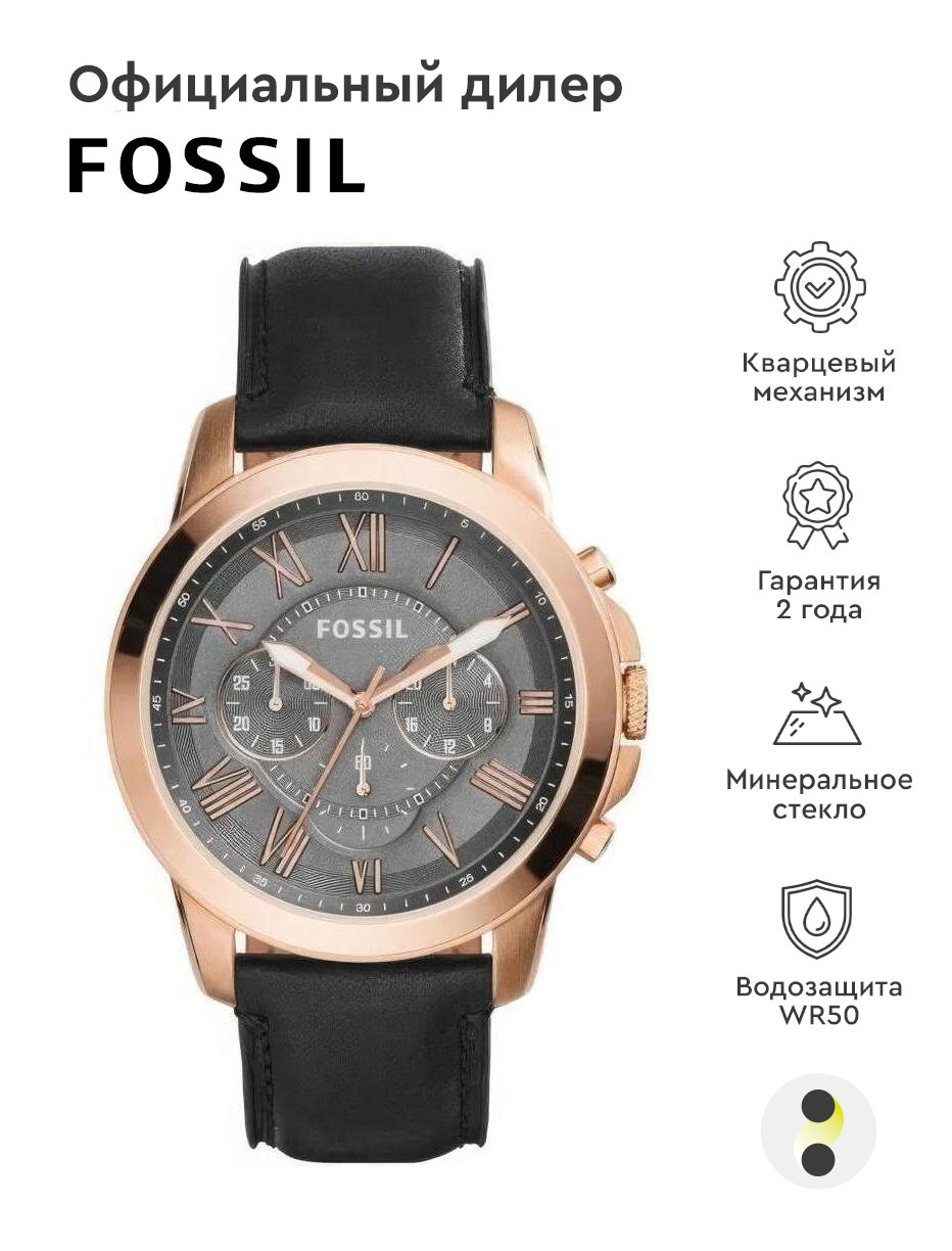 Наручные часы FOSSIL Grant, черный, серый