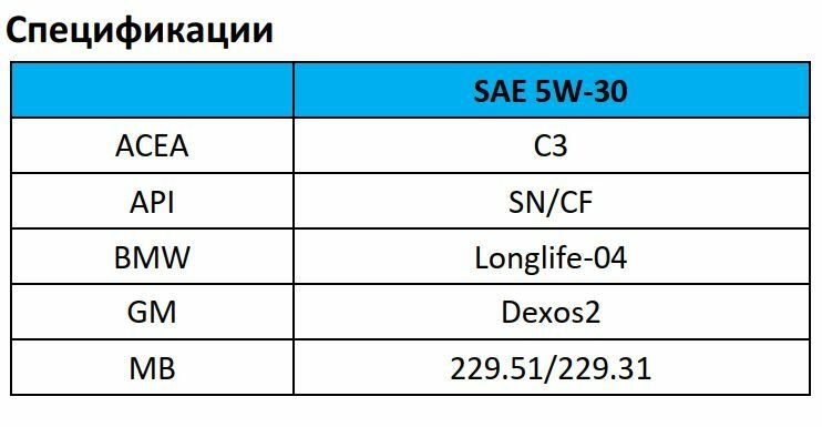 | Класс вязкости SAE | 5W-30 |