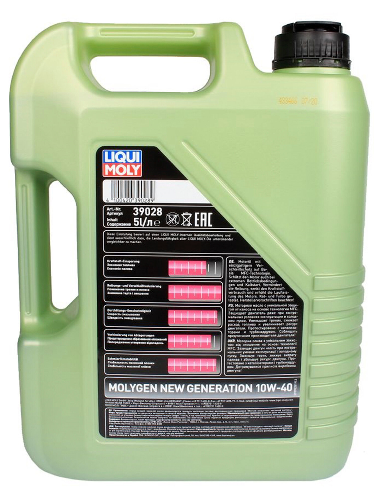 HC-синтетическое моторное масло LIQUI MOLY Molygen New Generation 10W-40 5 л по цене 4 л, 5 л