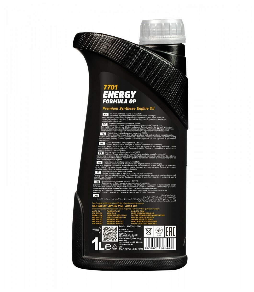 7701-1 mannol energy formula op 5w-30 синтетическое моторное масло 5w30 1л