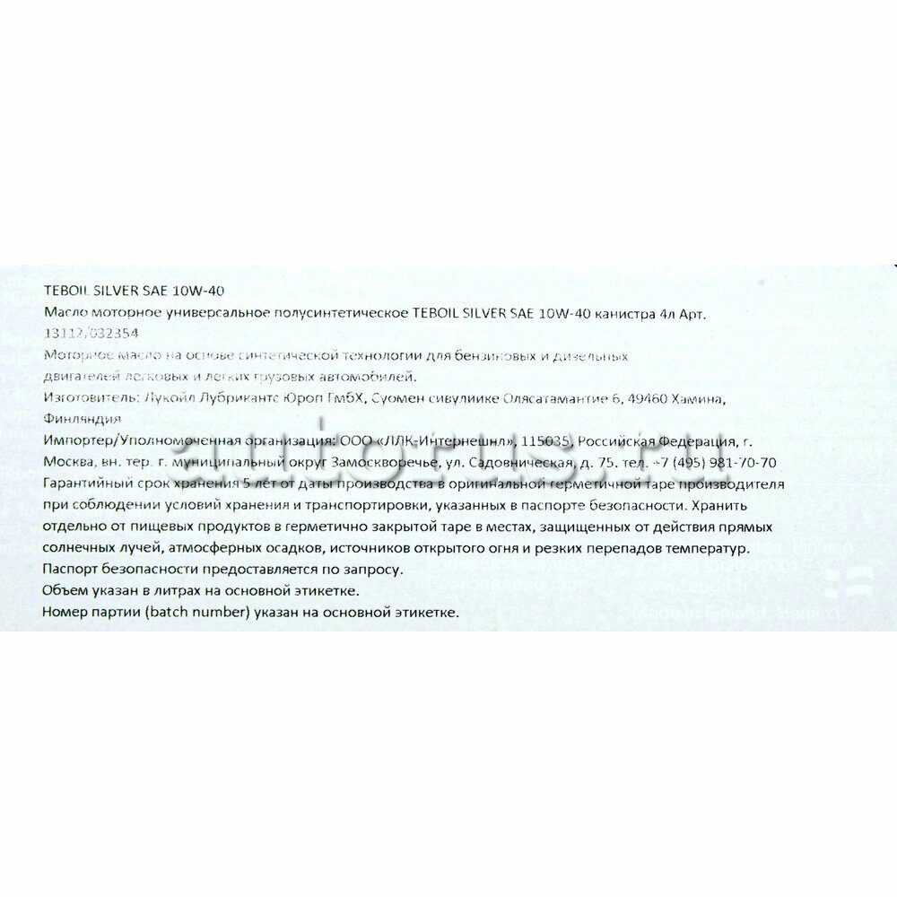 СохранитьМасло моторное TEBOIL SILVER 10W-40, 4л интересное: