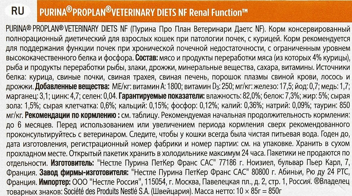 Ниже Вы можете прочитать отзывы на Purina Pro Plan Veterinary Diets NF Renal Function Advanced Care влажный корм для кошек для поддержания функции почек на поздней стадии хронической почечной недостаточности с курицей, в паучах - 85 г х 10 шт, ознакомится с подробными характеристиками, посмотреть интересные обзоры и фотографии на Purina Pro Plan Veterinary Diets NF Renal Function Advanced Care влажный корм для кошек для поддержания функции почек на поздней стадии хронической почечной недостаточности с курицей, в паучах - 85 г х 10 шт.