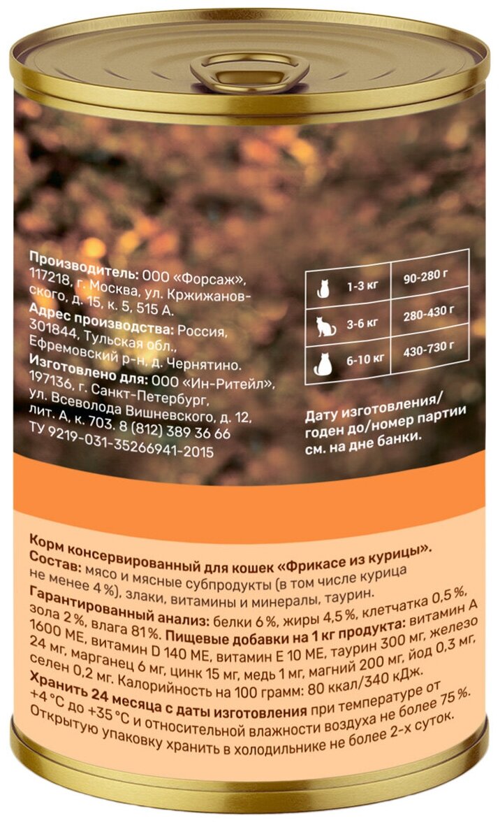 Консервы для кошек Фрикасе из курицы, 415 гр